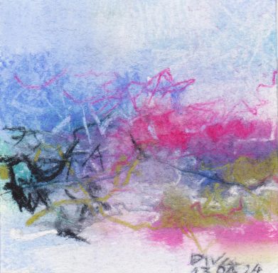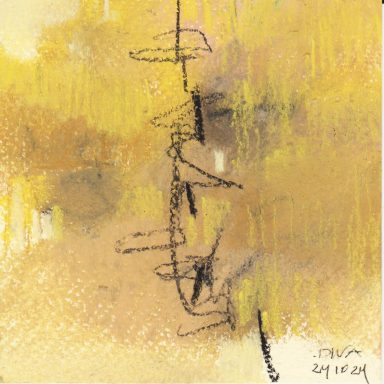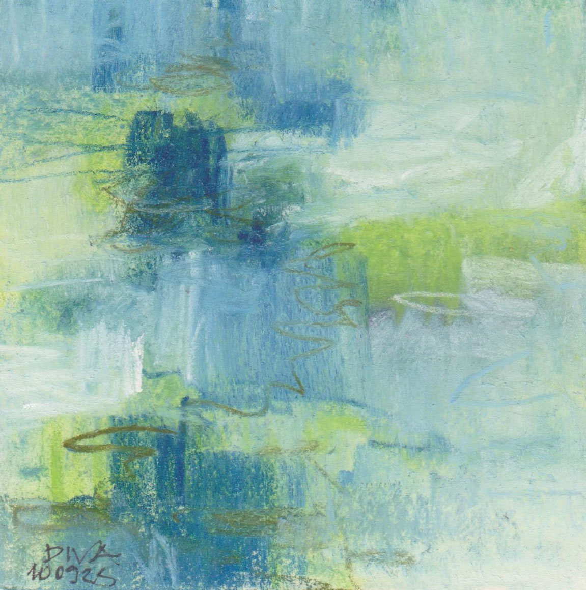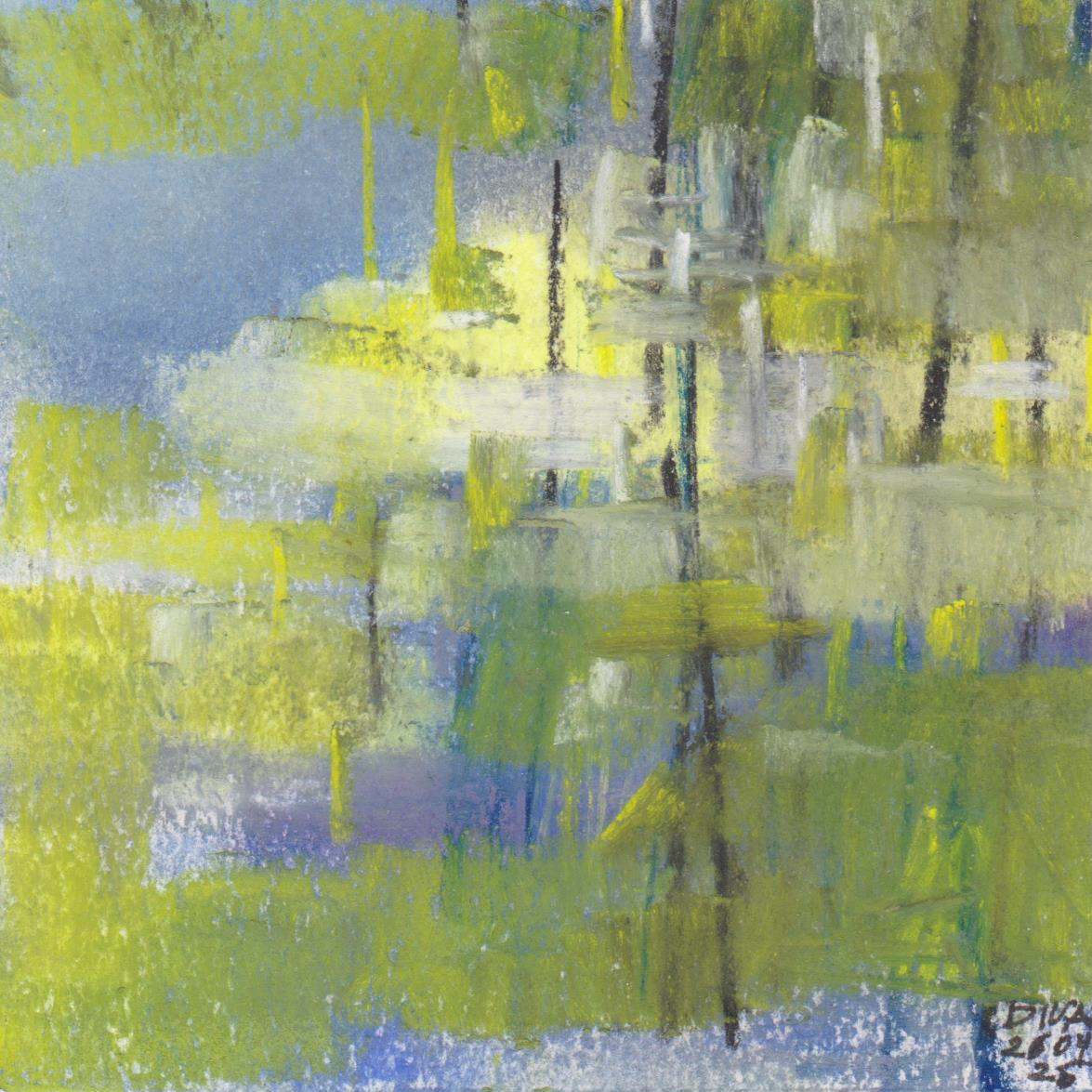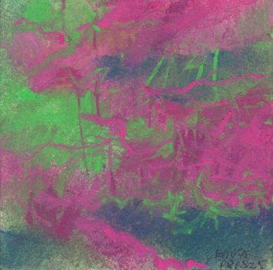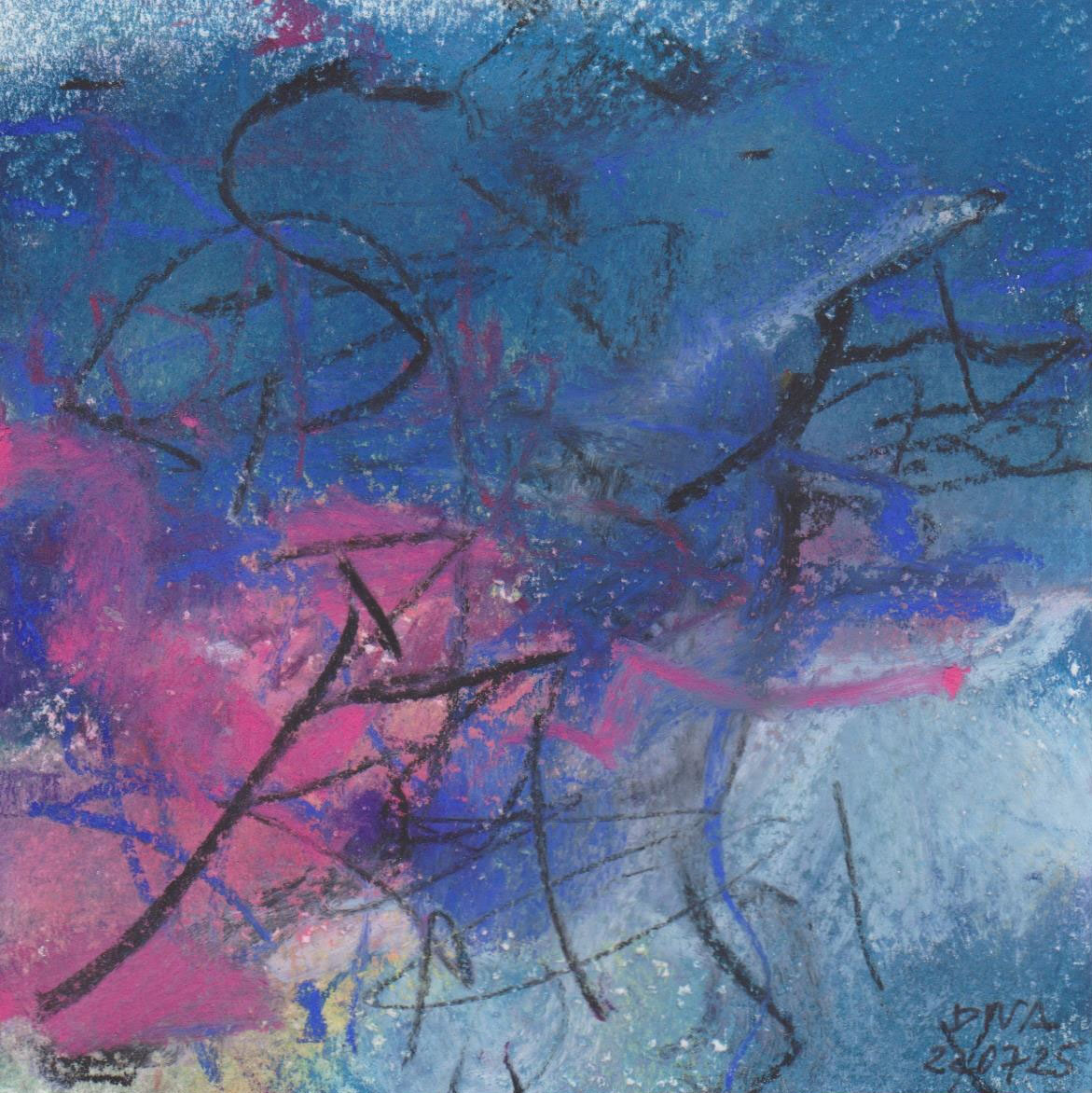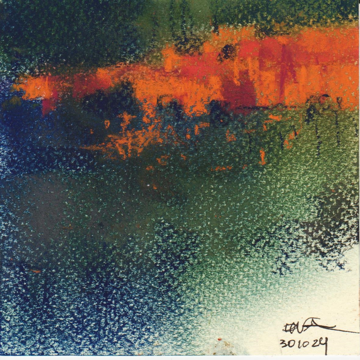 Diary 10×10 is an ongoing, process-driven series in which the artist creates one 10×10 cm pastel work each day. Each piece functions as a distilled record of that day’s atmosphere—capturing shifts in mood, memory, and gesture within a compact visual field. Through repetition and daily discipline, the series forms an evolving archive of presence. Subtle shifts in colour, texture, and movement trace both the continuity and the ongoing transformation of the artist’s practice. Viewed together, these small works form a cumulative visual narrative that traces the progression of time and thought.