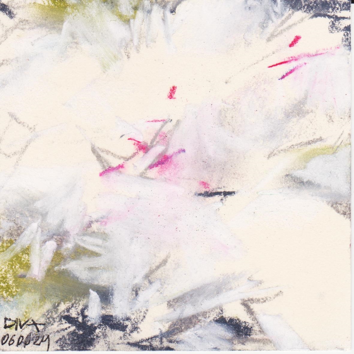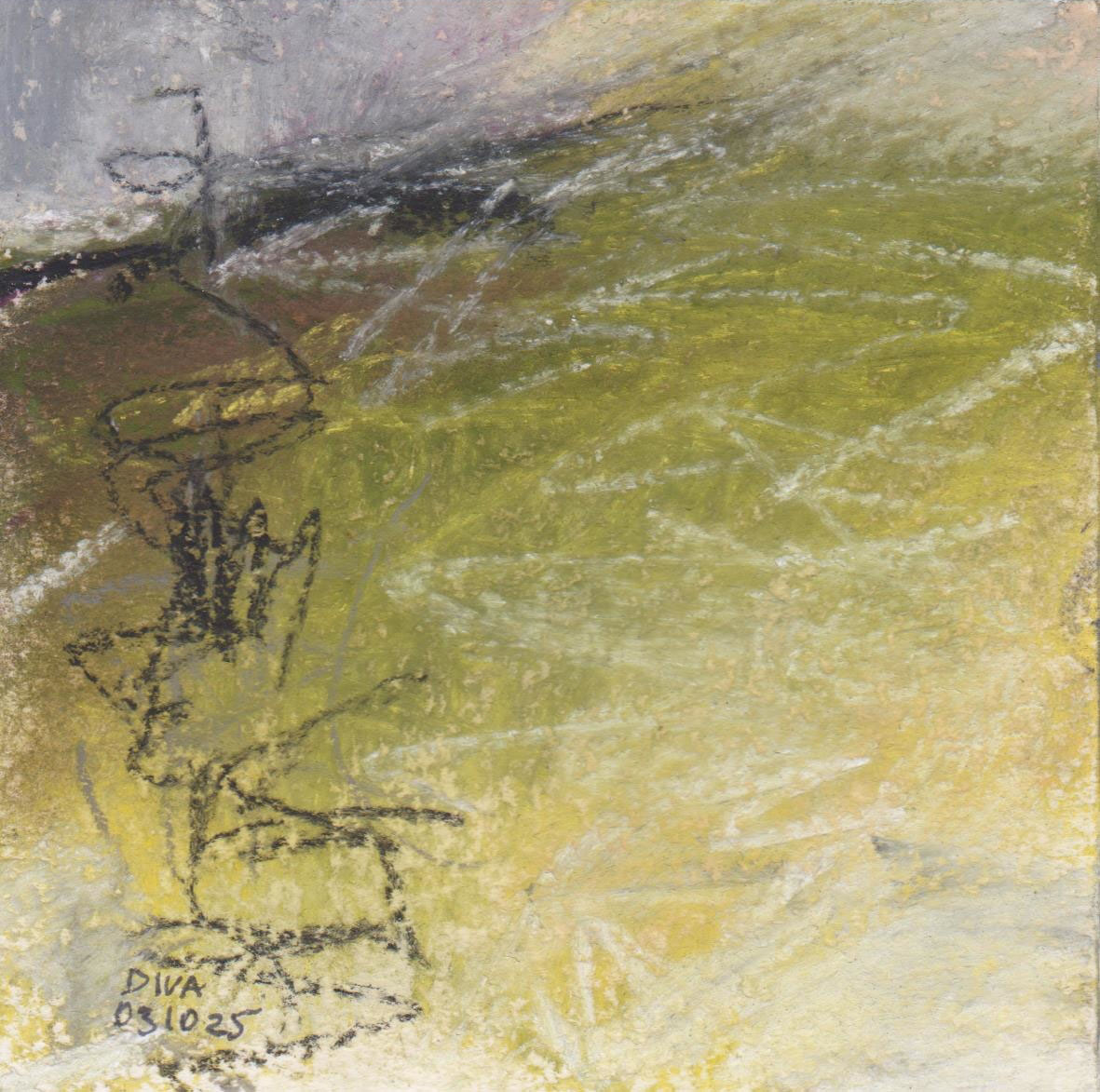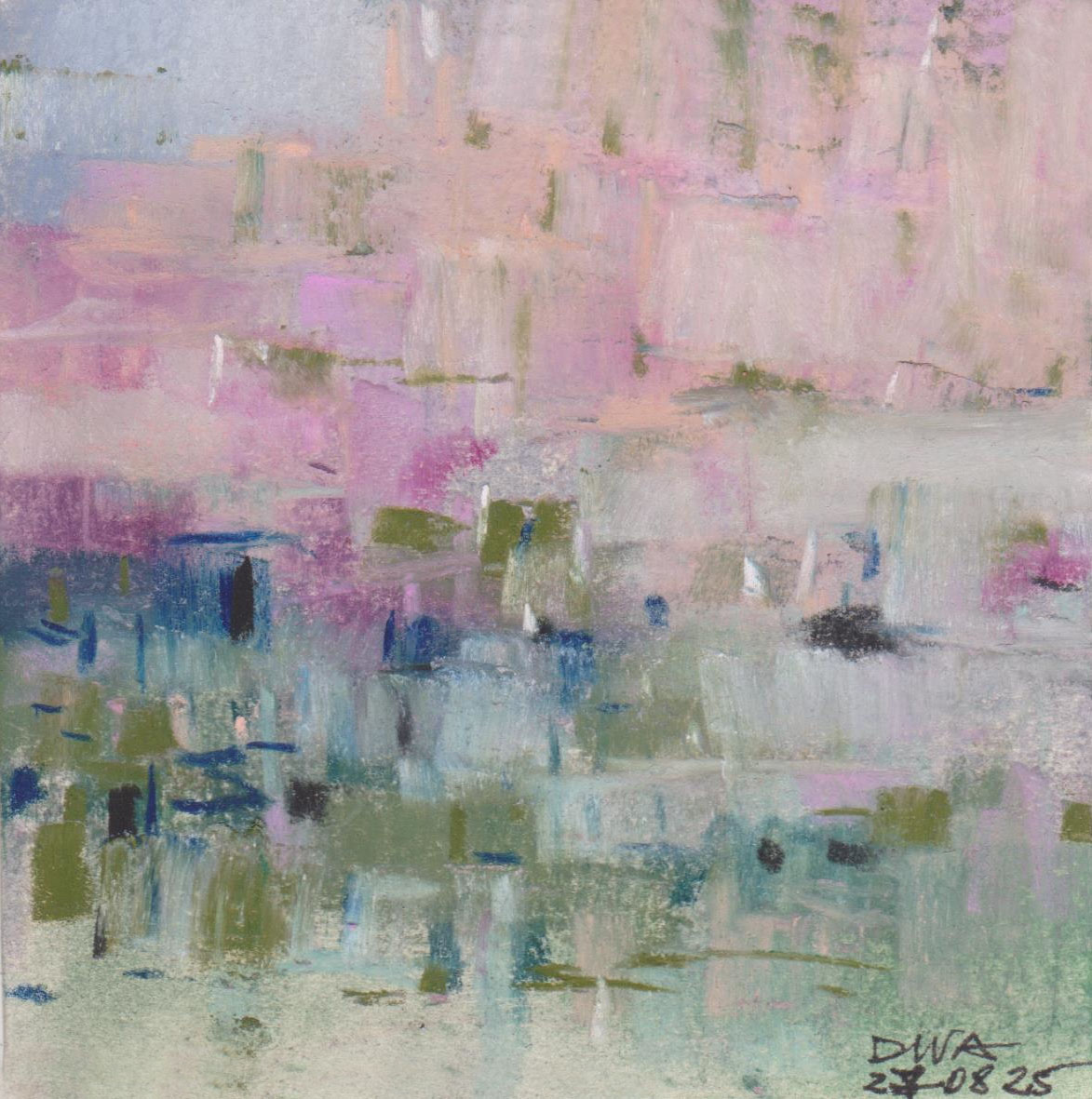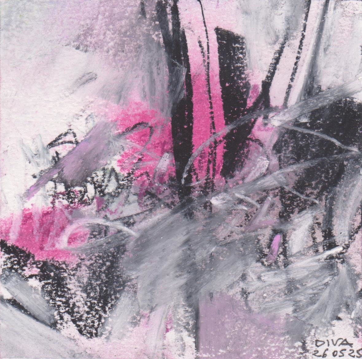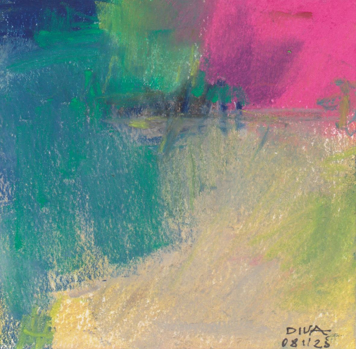 Diary 10×10 is an ongoing, process-driven series in which the artist creates one 10×10 cm pastel work each day. Each piece functions as a distilled record of that day’s atmosphere—capturing shifts in mood, memory, and gesture within a compact visual field. Through repetition and daily discipline, the series forms an evolving archive of presence. Subtle shifts in colour, texture, and movement trace both the continuity and the ongoing transformation of the artist’s practice. Viewed together, these small works form a cumulative visual narrative that traces the progression of time and thought.