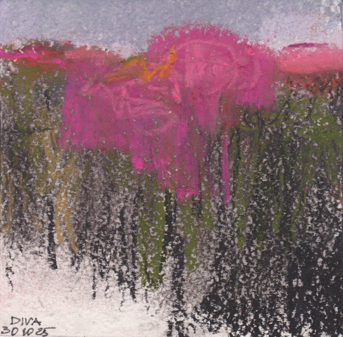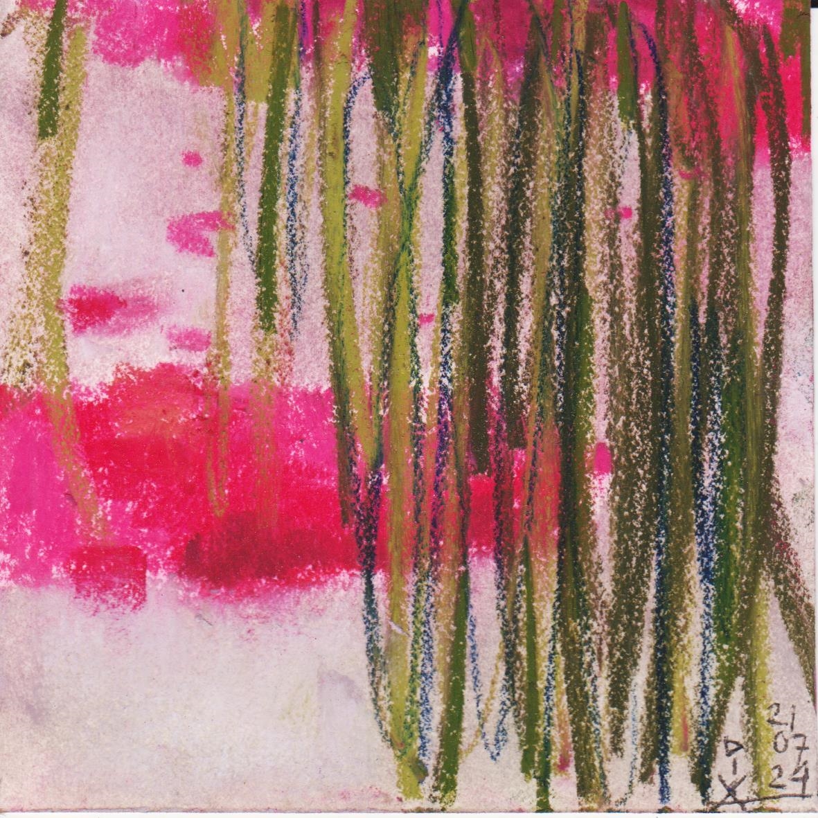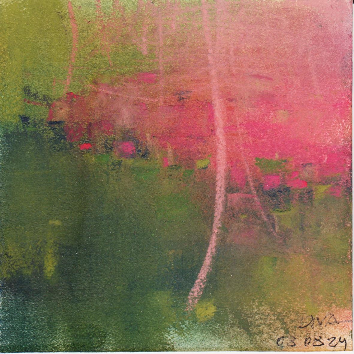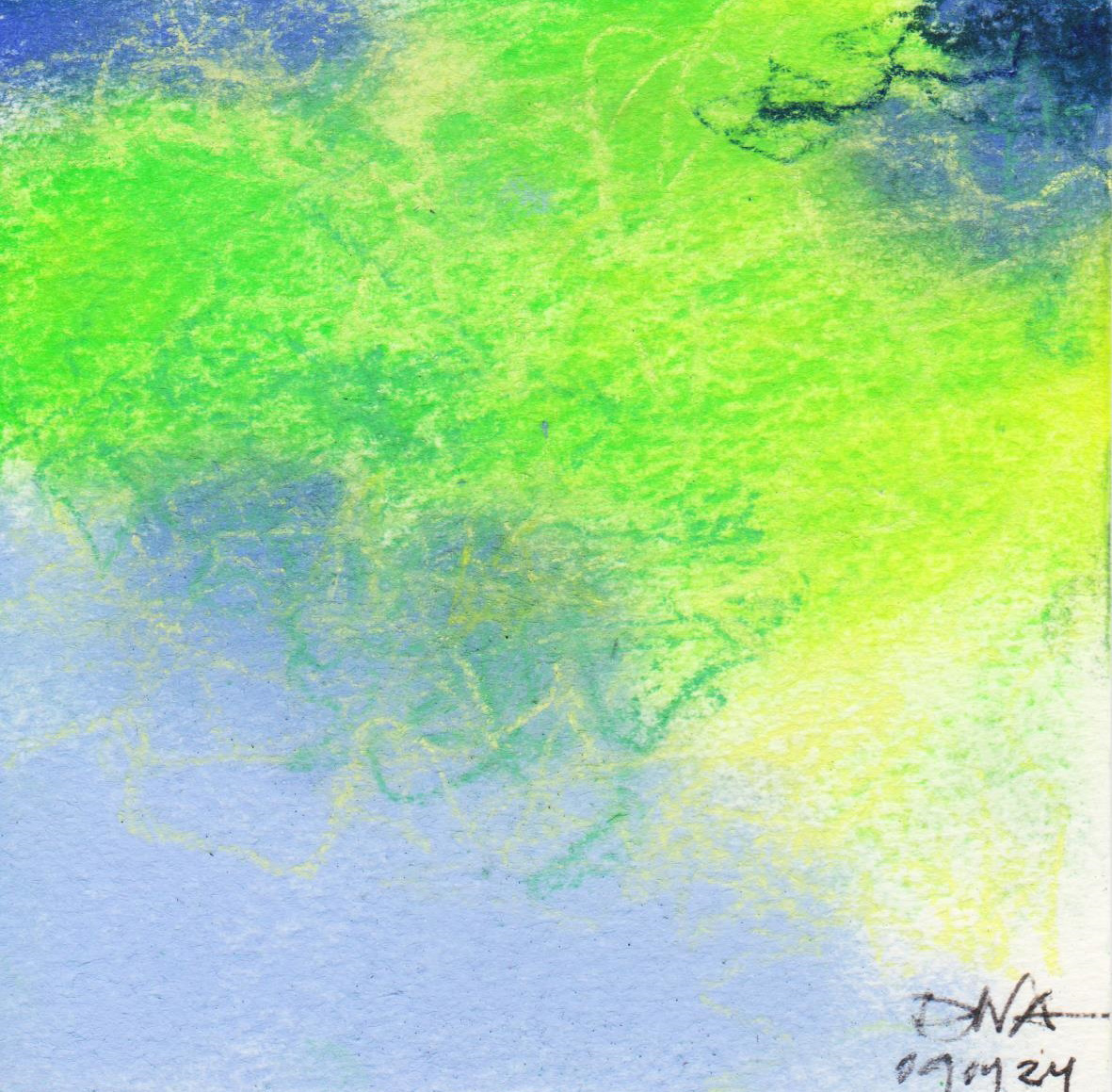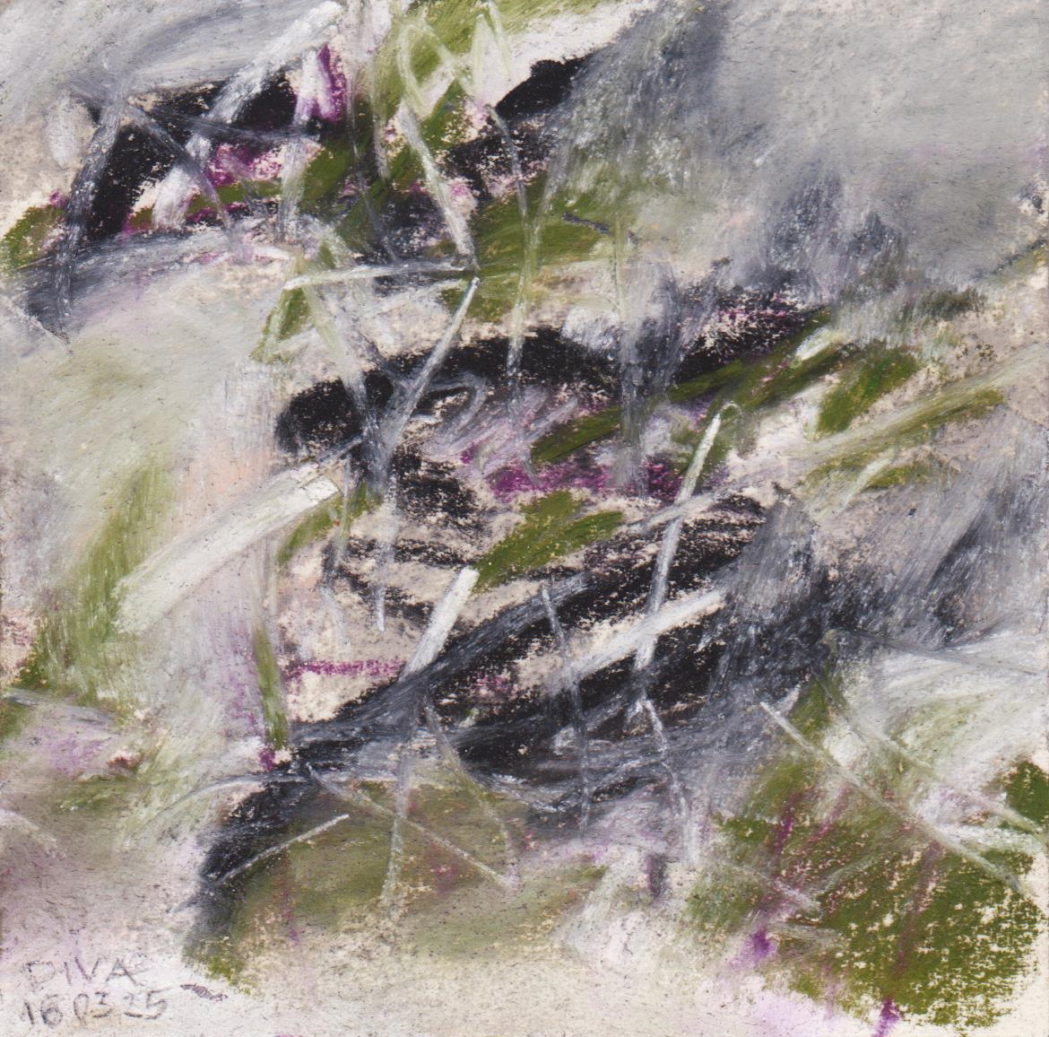 Diary 10×10 is an ongoing, process-driven series in which the artist creates one 10×10 cm pastel work each day. Each piece functions as a distilled record of that day’s atmosphere—capturing shifts in mood, memory, and gesture within a compact visual field. Through repetition and daily discipline, the series forms an evolving archive of presence. Subtle shifts in colour, texture, and movement trace both the continuity and the ongoing transformation of the artist’s practice. Viewed together, these small works form a cumulative visual narrative that traces the progression of time and thought.