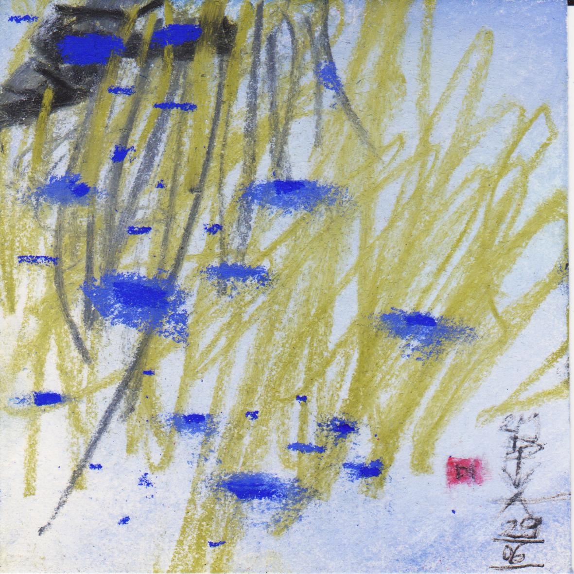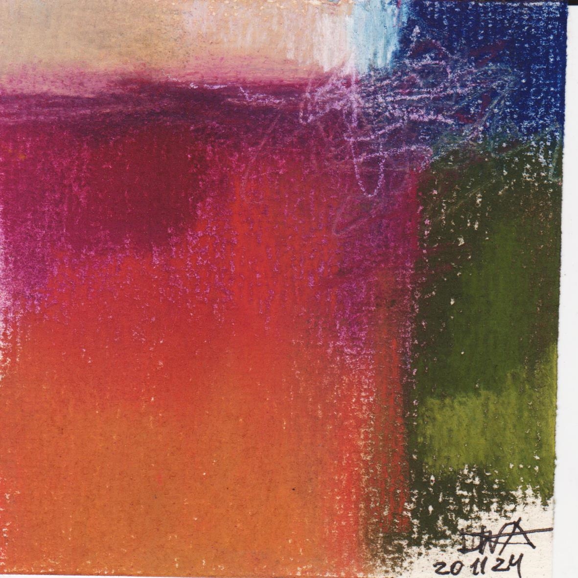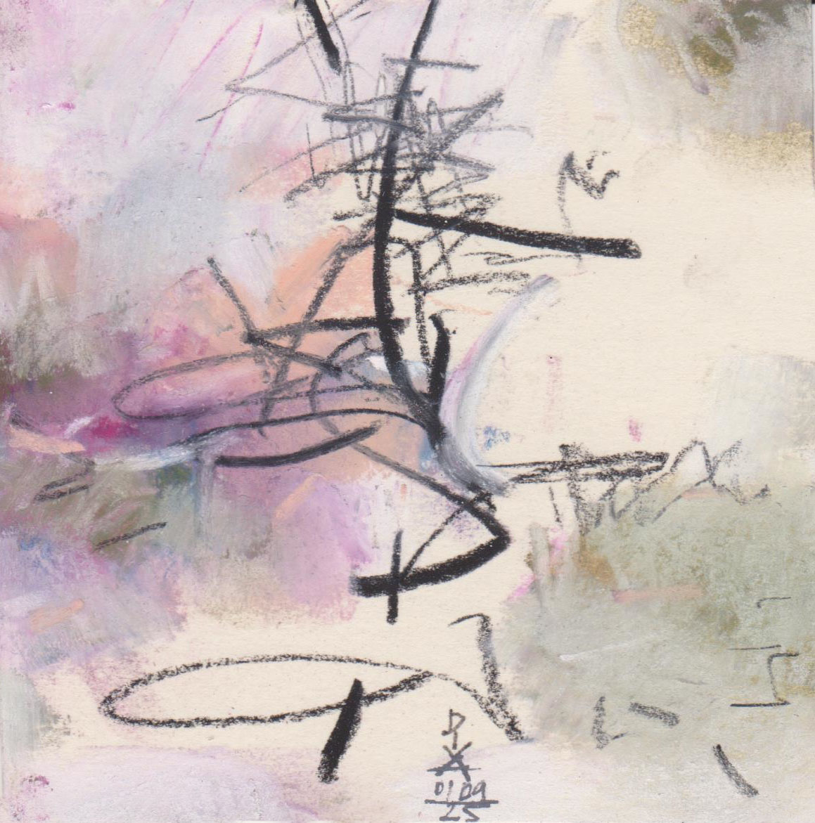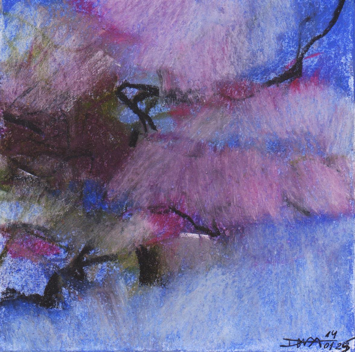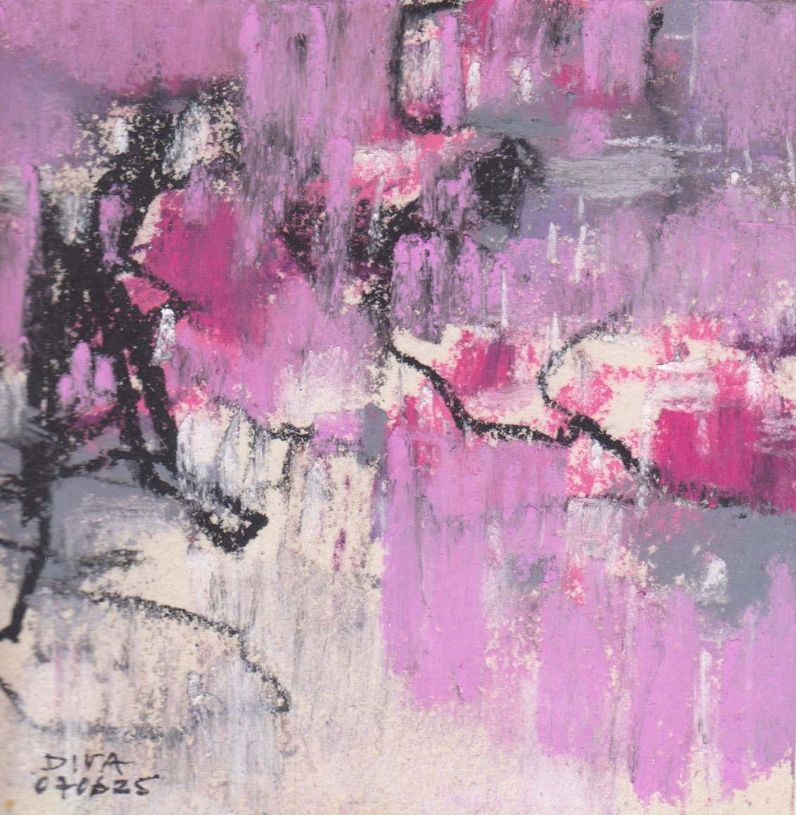 Diary 10×10 is an ongoing, process-driven series in which the artist creates one 10×10 cm pastel work each day. Each piece functions as a distilled record of that day’s atmosphere—capturing shifts in mood, memory, and gesture within a compact visual field. Through repetition and daily discipline, the series forms an evolving archive of presence. Subtle shifts in colour, texture, and movement trace both the continuity and the ongoing transformation of the artist’s practice. Viewed together, these small works form a cumulative visual narrative that traces the progression of time and thought.