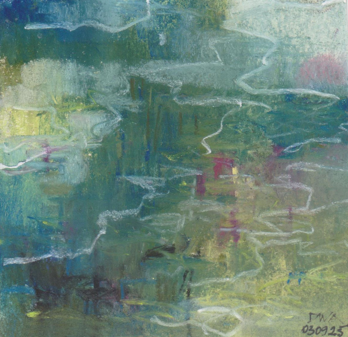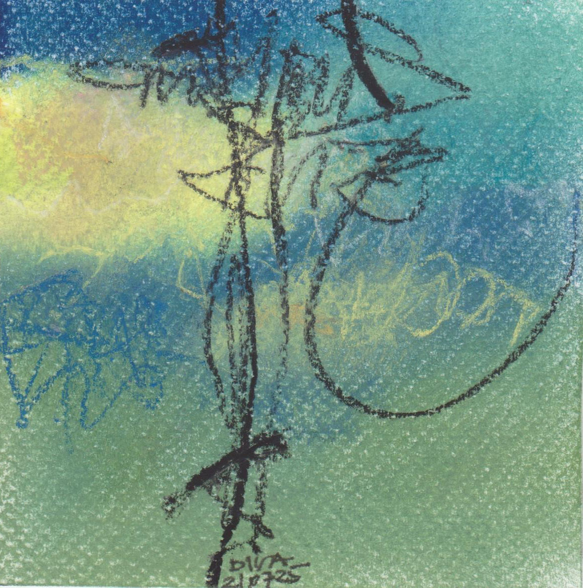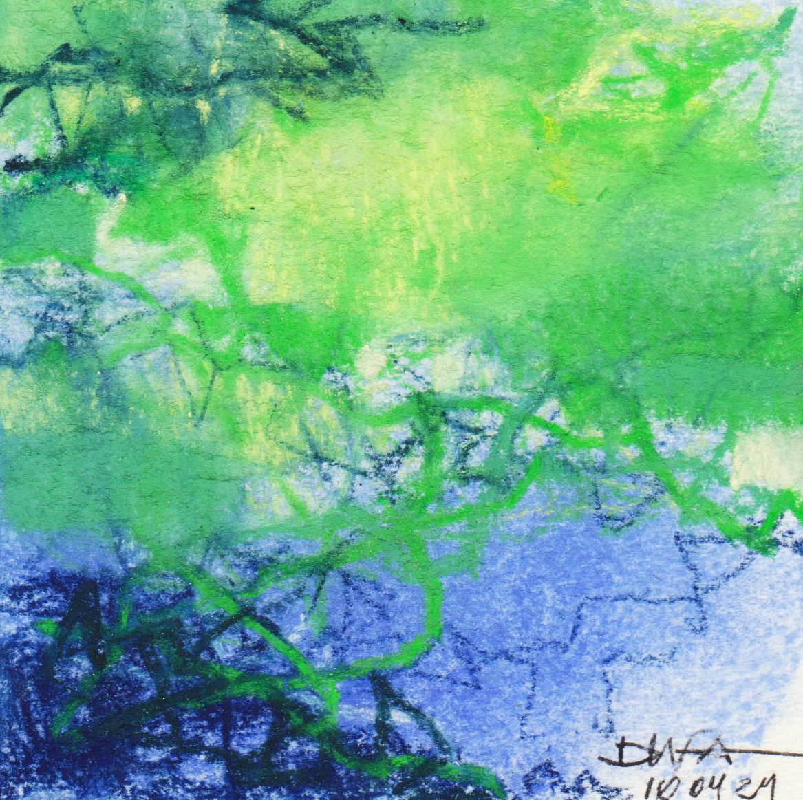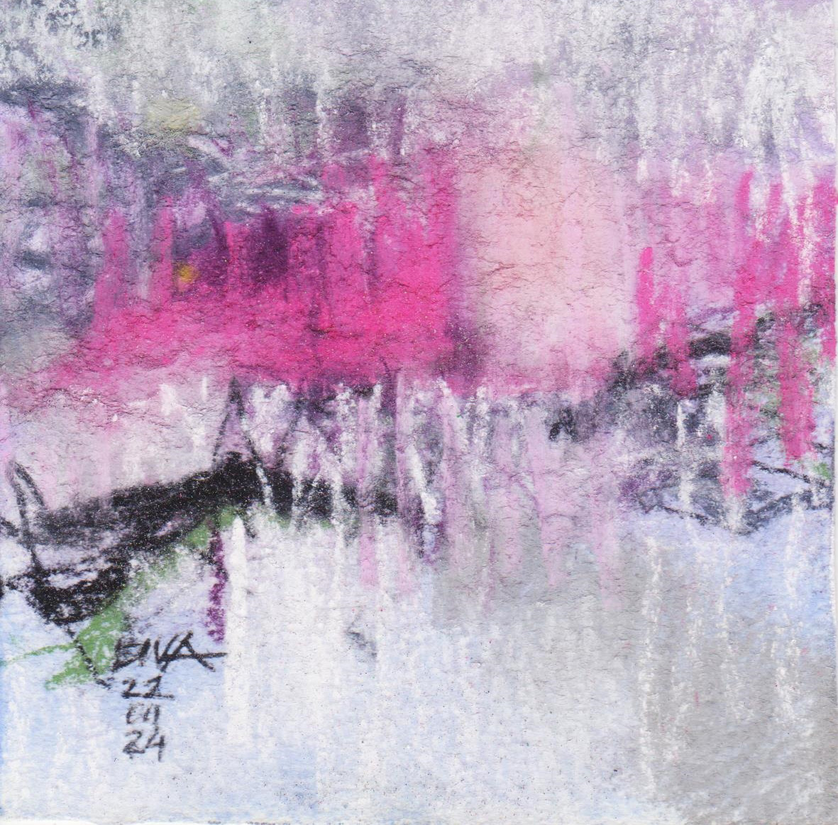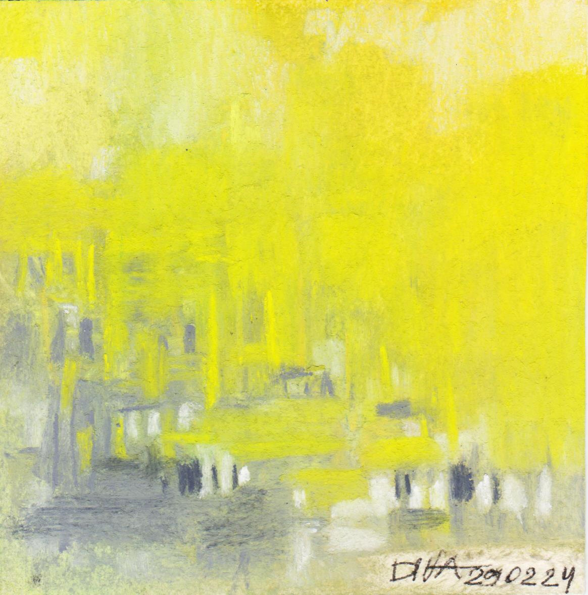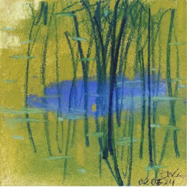 Diary 10×10 is an ongoing, process-driven series in which the artist creates one 10×10 cm pastel work each day. Each piece functions as a distilled record of that day’s atmosphere—capturing shifts in mood, memory, and gesture within a compact visual field. Through repetition and daily discipline, the series forms an evolving archive of presence. Subtle shifts in colour, texture, and movement trace both the continuity and the ongoing transformation of the artist’s practice. Viewed together, these small works form a cumulative visual narrative that traces the progression of time and thought.