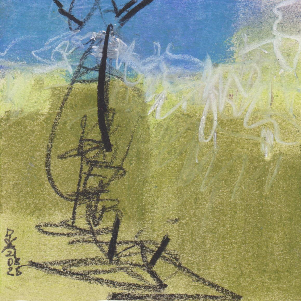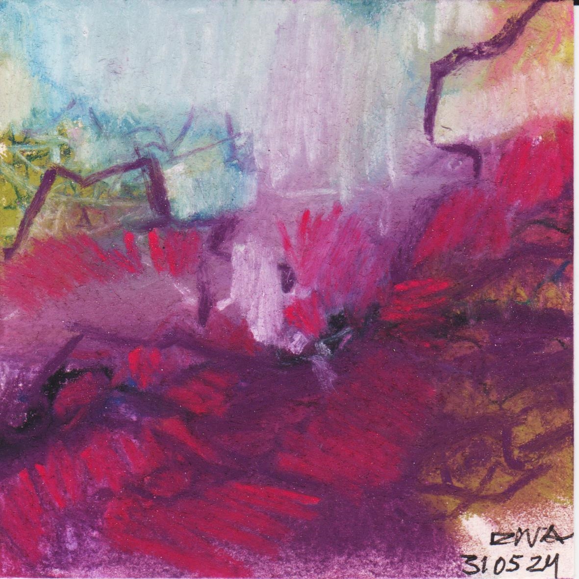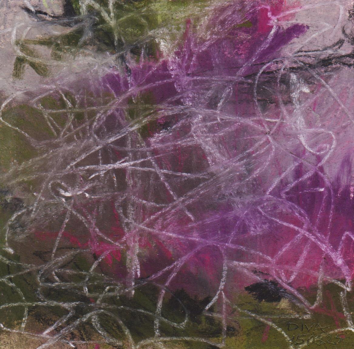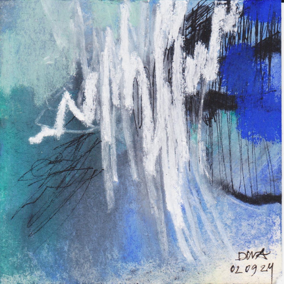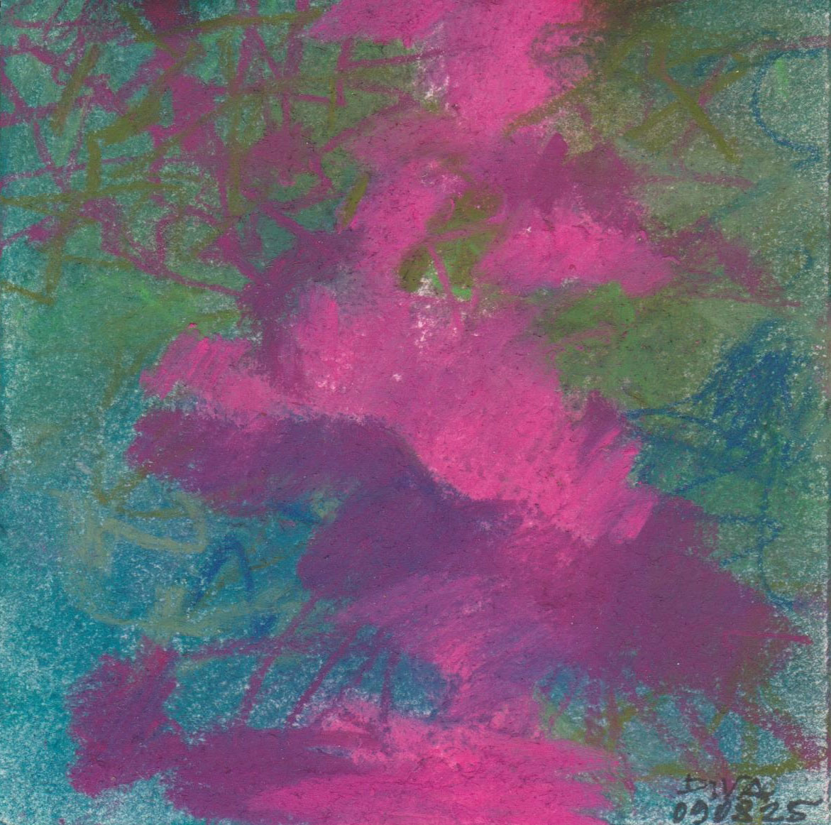 Diary 10×10 is an ongoing, process-driven series in which the artist creates one 10×10 cm pastel work each day. Each piece functions as a distilled record of that day’s atmosphere—capturing shifts in mood, memory, and gesture within a compact visual field. Through repetition and daily discipline, the series forms an evolving archive of presence. Subtle shifts in colour, texture, and movement trace both the continuity and the ongoing transformation of the artist’s practice. Viewed together, these small works form a cumulative visual narrative that traces the progression of time and thought.