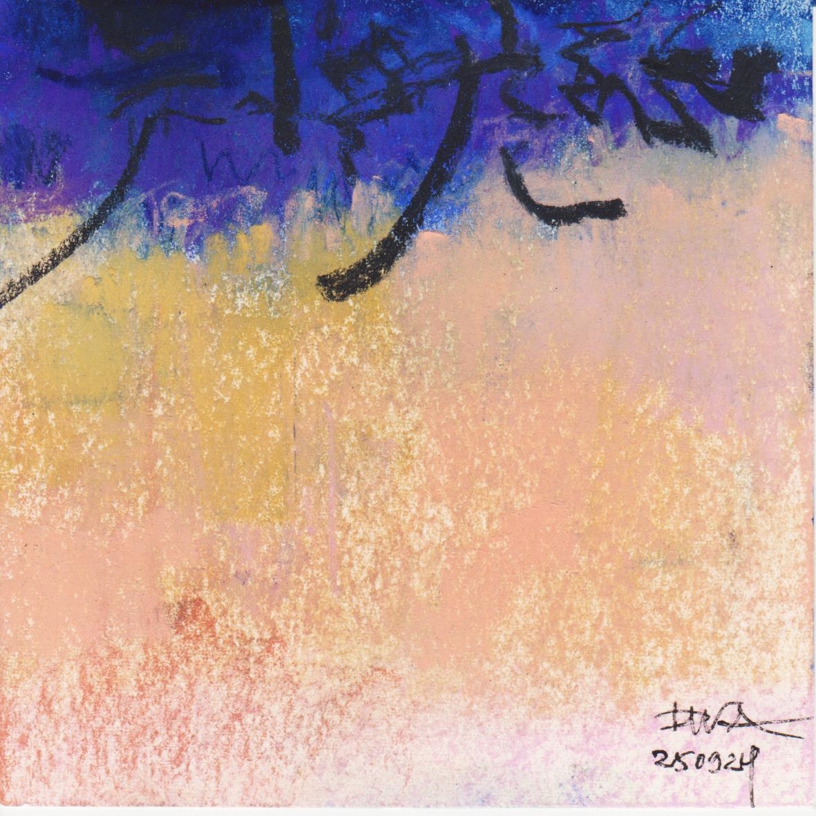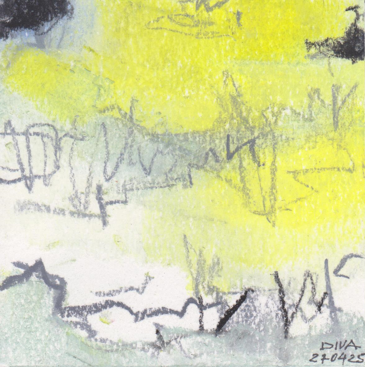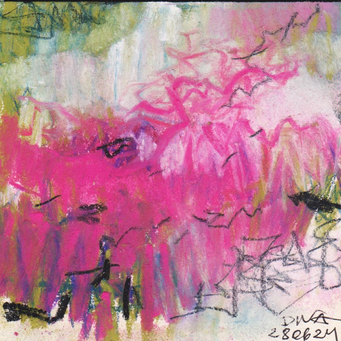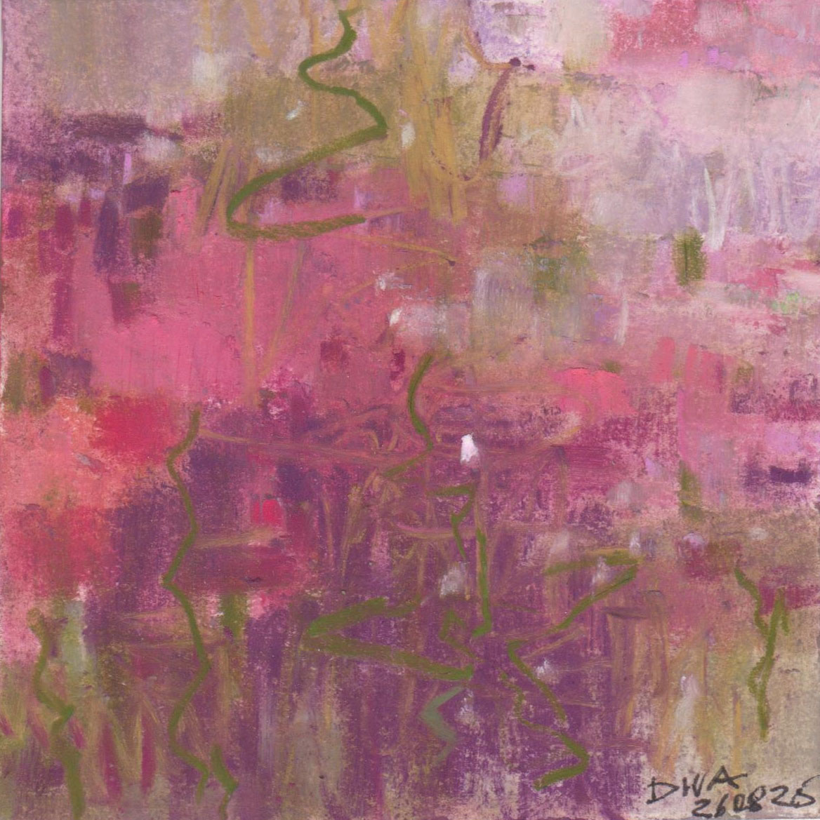 Diary 10×10 is an ongoing, process-driven series in which the artist creates one 10×10 cm pastel work each day. Each piece functions as a distilled record of that day’s atmosphere—capturing shifts in mood, memory, and gesture within a compact visual field. Through repetition and daily discipline, the series forms an evolving archive of presence. Subtle shifts in colour, texture, and movement trace both the continuity and the ongoing transformation of the artist’s practice. Viewed together, these small works form a cumulative visual narrative that traces the progression of time and thought.