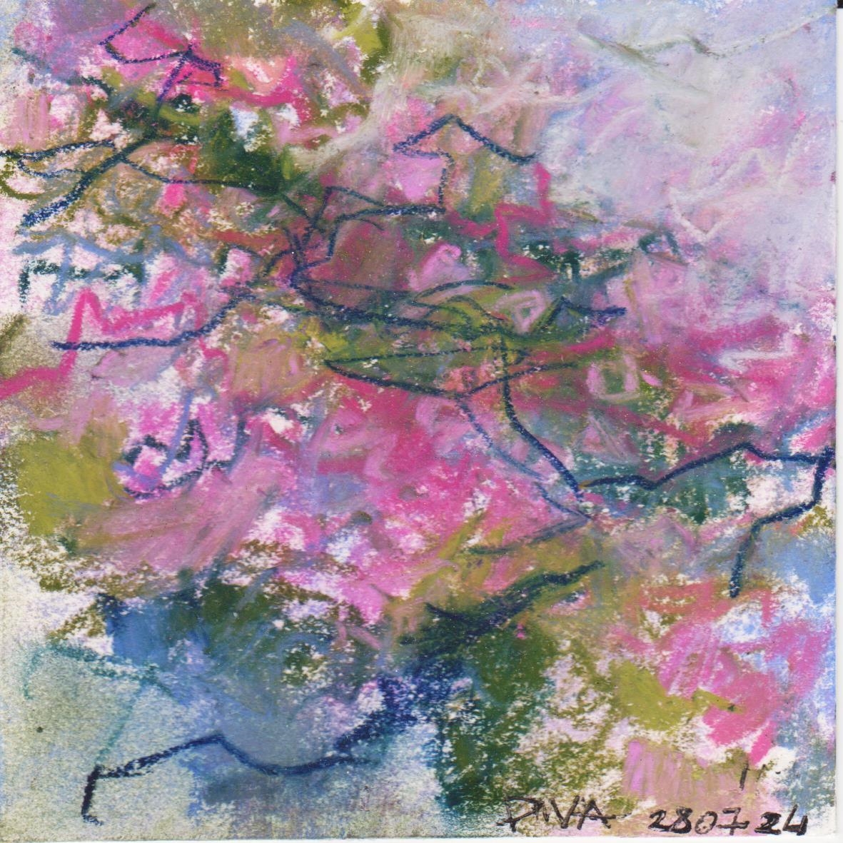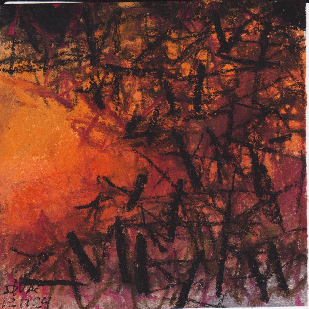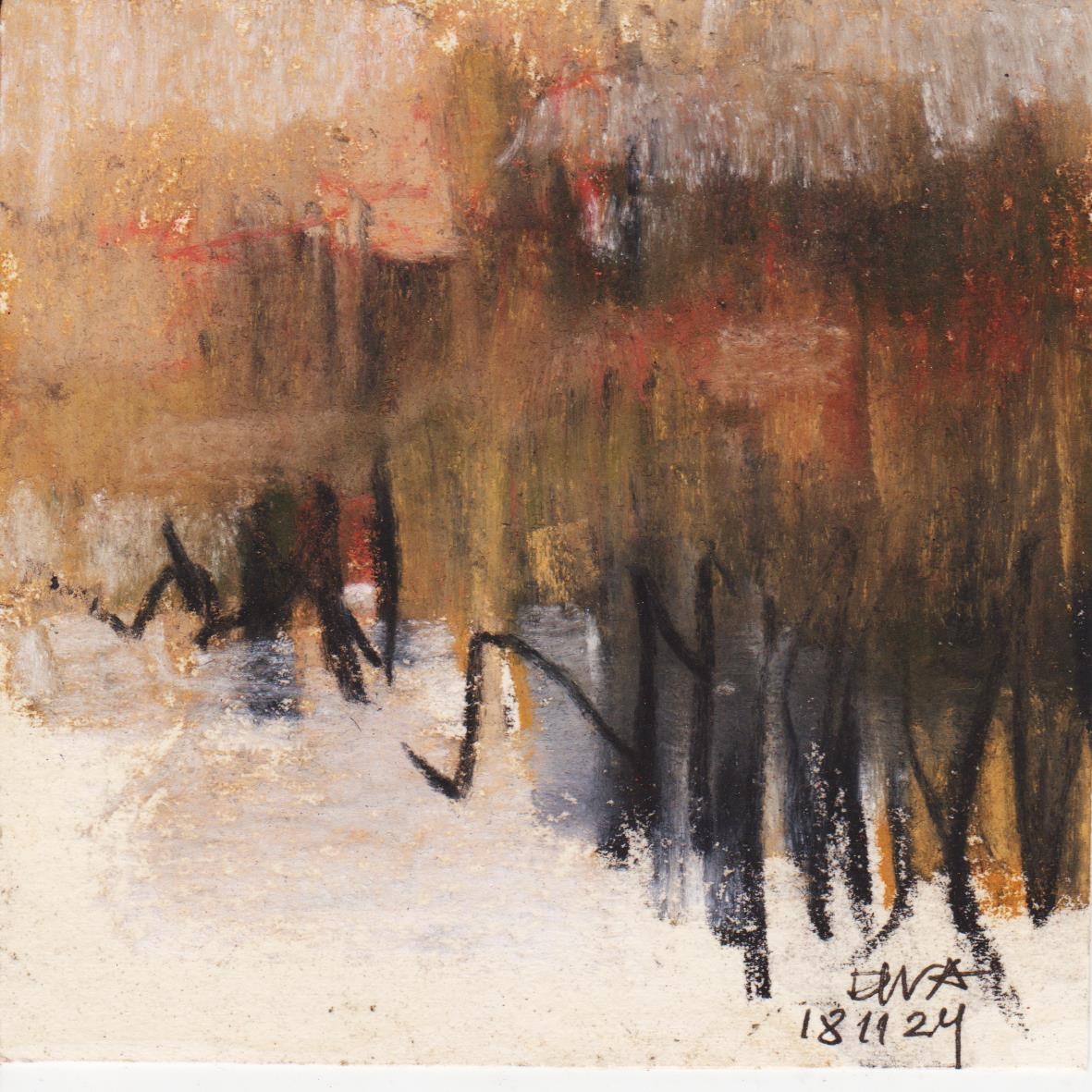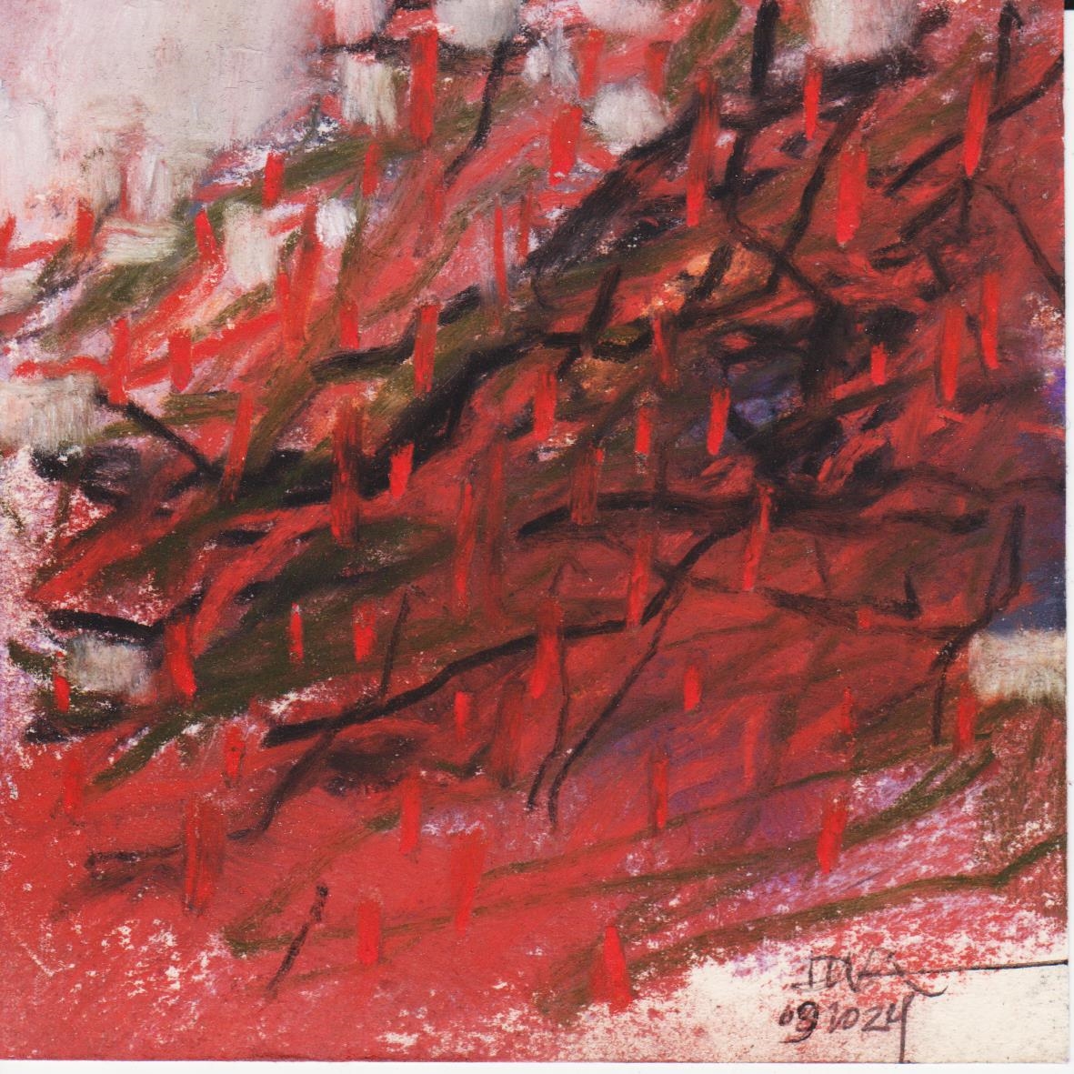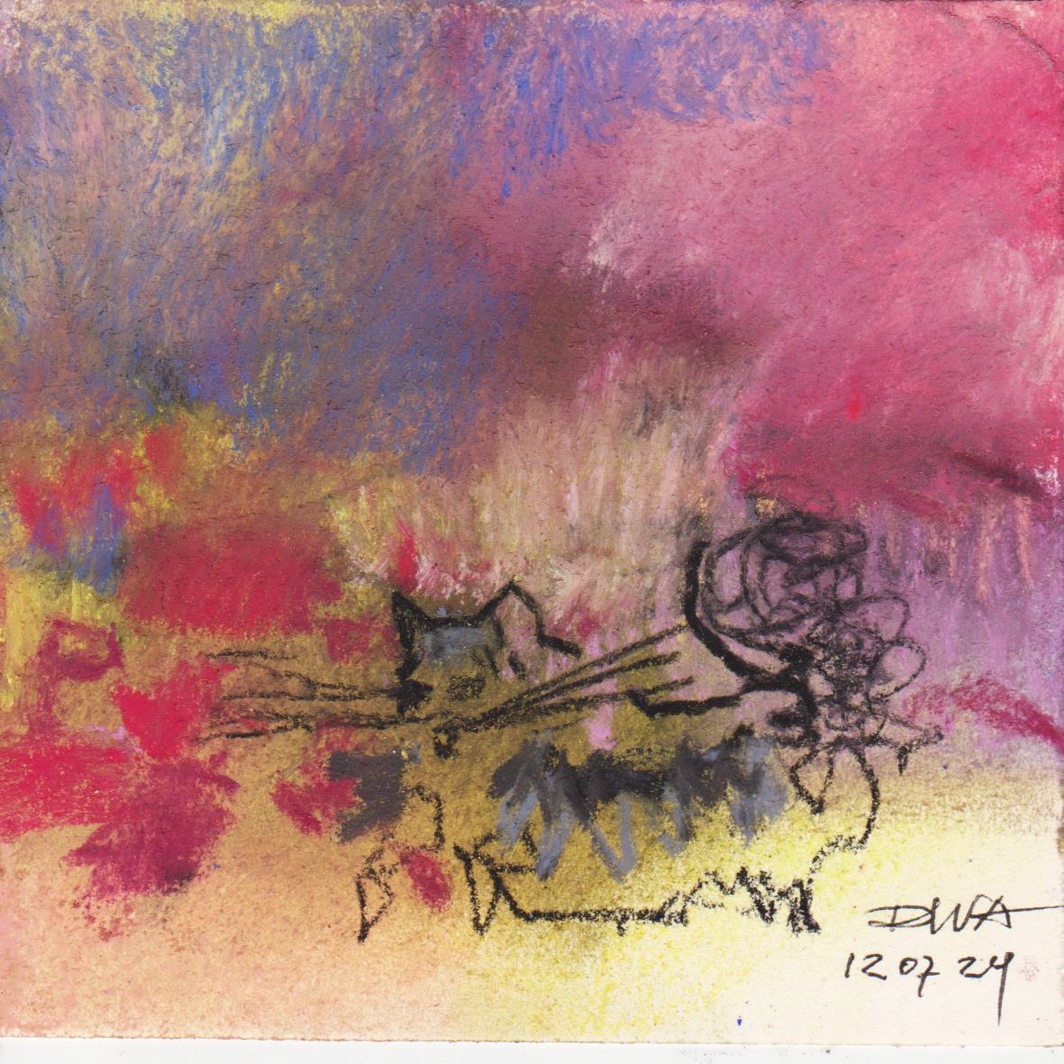 Diary 10×10 is an ongoing, process-driven series in which the artist creates one 10×10 cm pastel work each day. Each piece functions as a distilled record of that day’s atmosphere—capturing shifts in mood, memory, and gesture within a compact visual field. Through repetition and daily discipline, the series forms an evolving archive of presence. Subtle shifts in colour, texture, and movement trace both the continuity and the ongoing transformation of the artist’s practice. Viewed together, these small works form a cumulative visual narrative that traces the progression of time and thought.