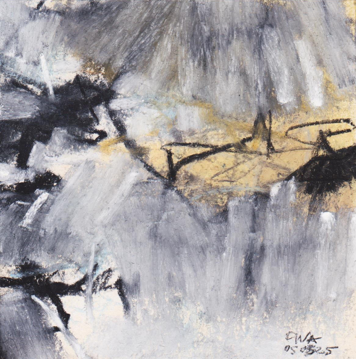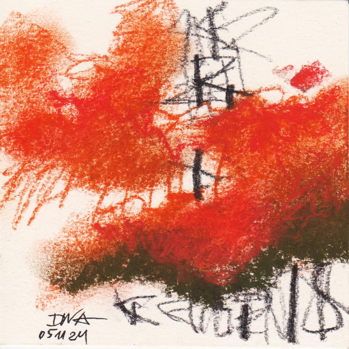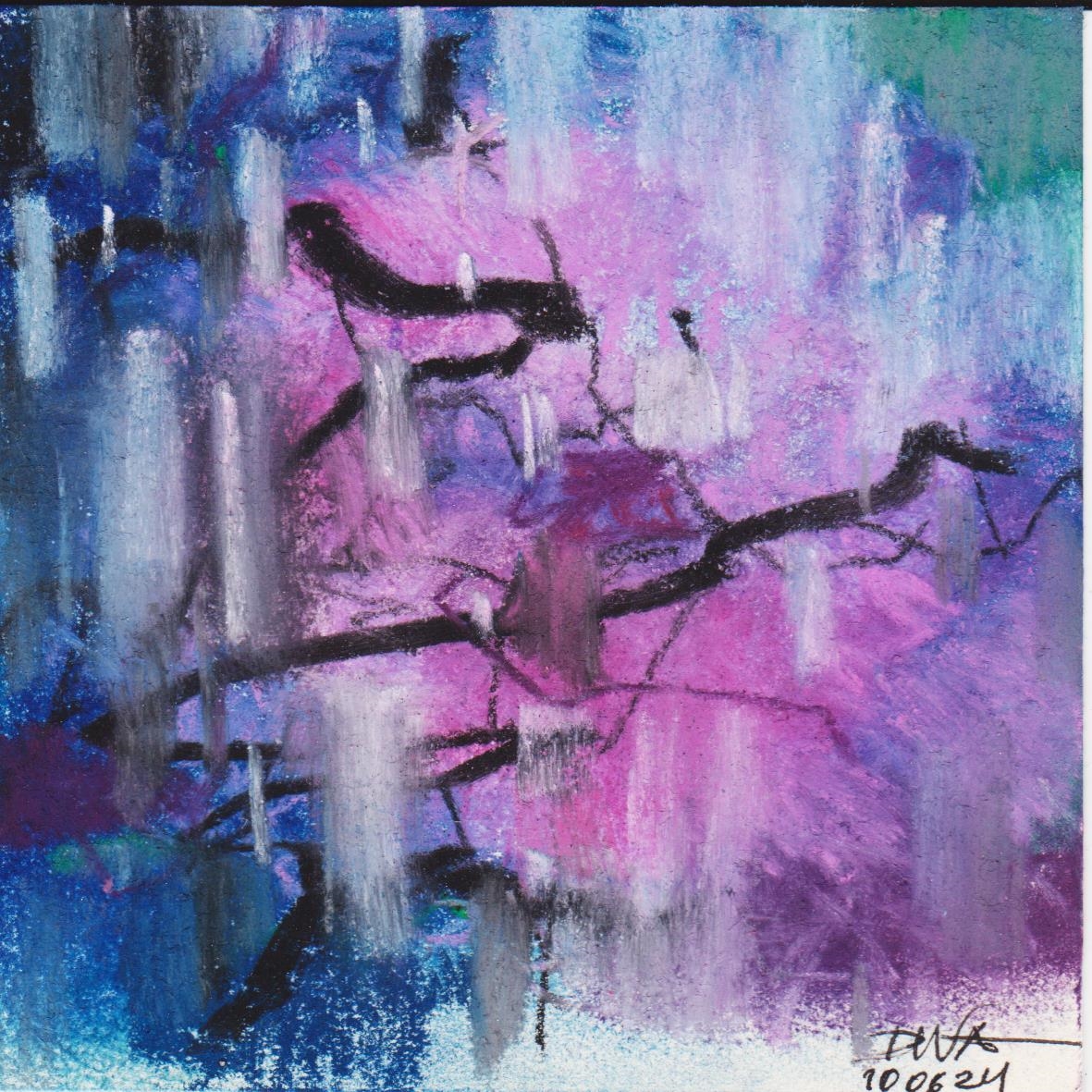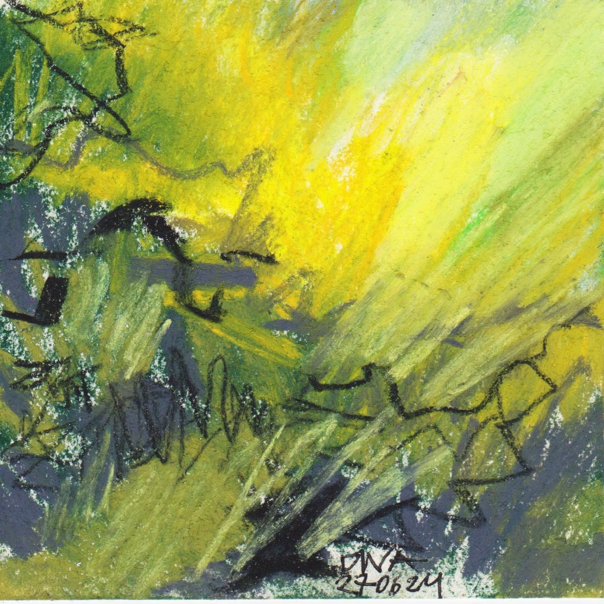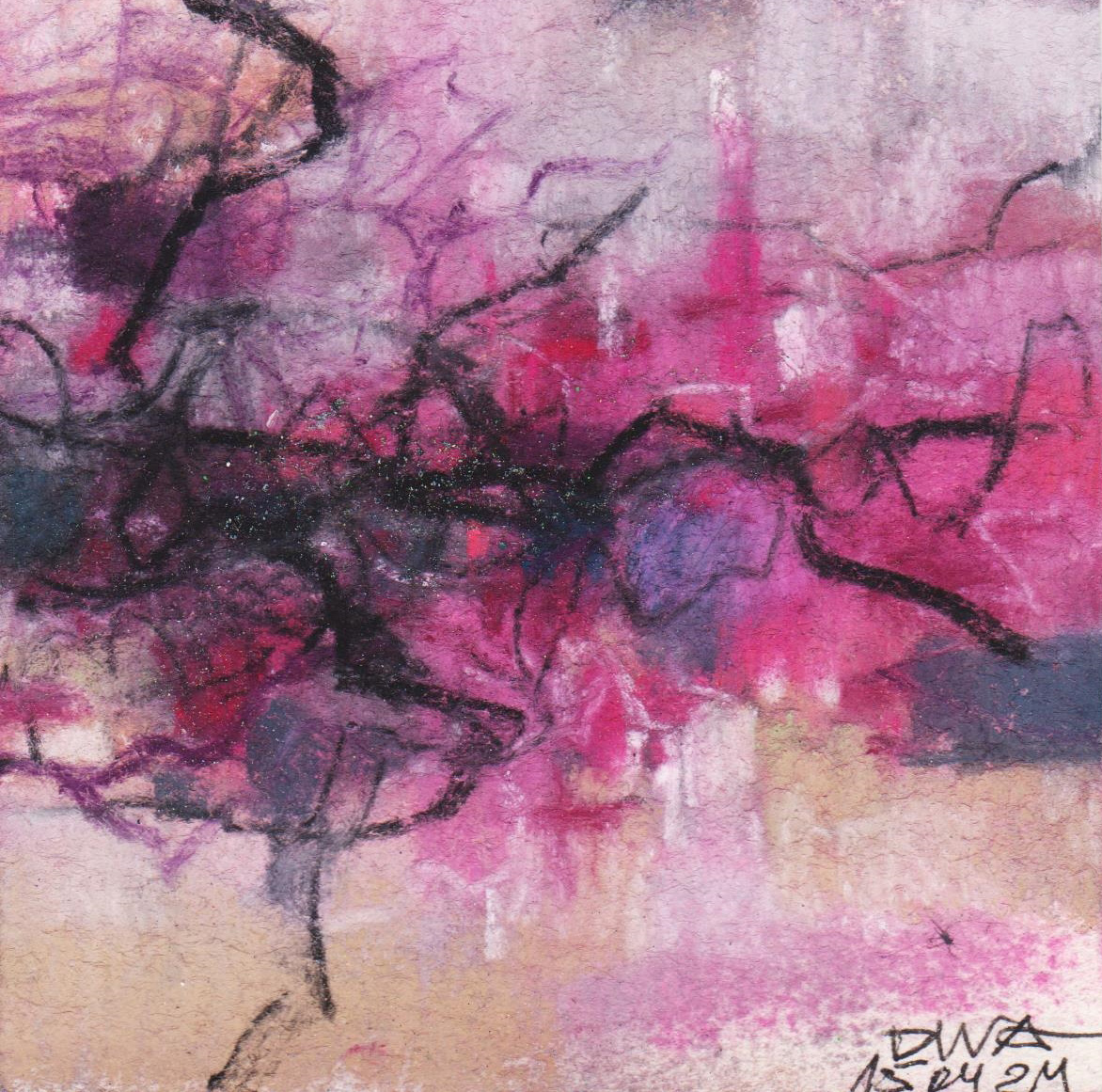Diary 10×10 is an ongoing, process-driven series in which the artist creates one 10×10 cm pastel work each day. Each piece functions as a distilled record of that day’s atmosphere—capturing shifts in mood, memory, and gesture within a compact visual field. Through repetition and daily discipline, the series forms an evolving archive of presence. Subtle shifts in colour, texture, and movement trace both the continuity and the ongoing transformation of the artist’s practice. Viewed together, these small works form a cumulative visual narrative that traces the progression of time and thought.