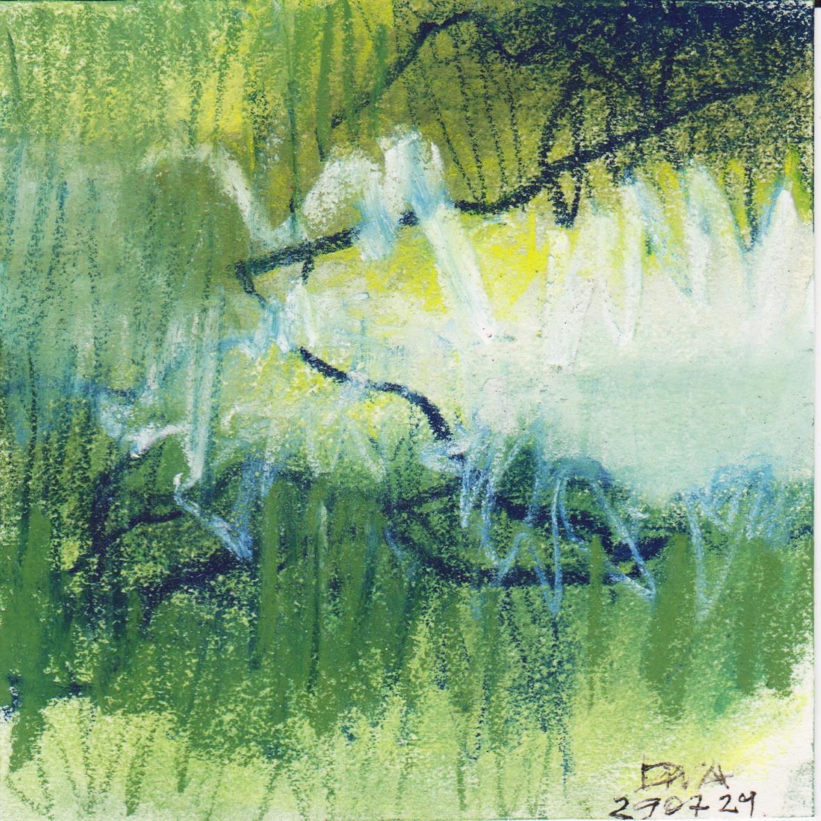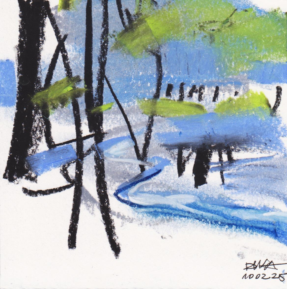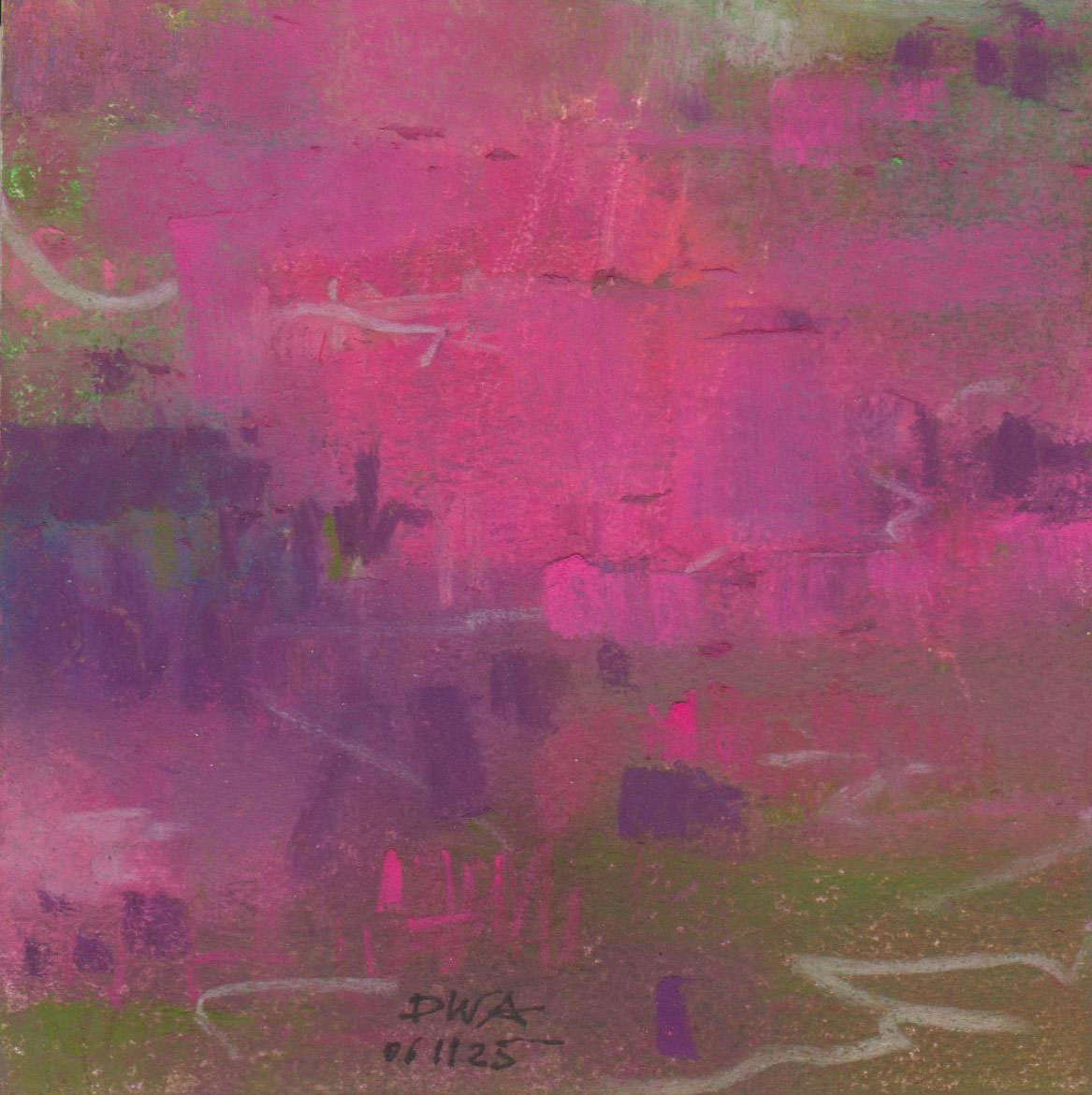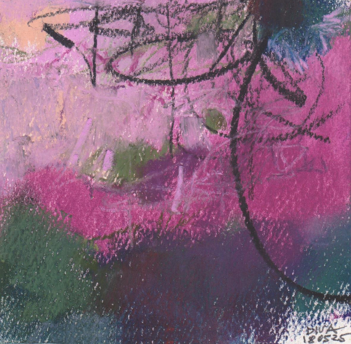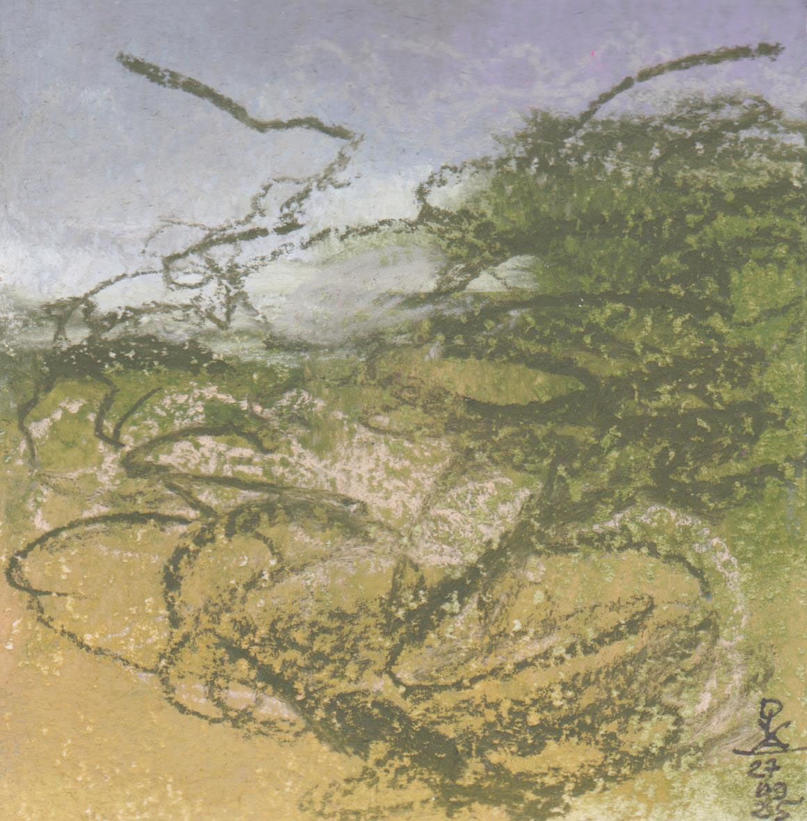 Diary 10×10 is an ongoing, process-driven series in which the artist creates one 10×10 cm pastel work each day. Each piece functions as a distilled record of that day’s atmosphere—capturing shifts in mood, memory, and gesture within a compact visual field. Through repetition and daily discipline, the series forms an evolving archive of presence. Subtle shifts in colour, texture, and movement trace both the continuity and the ongoing transformation of the artist’s practice. Viewed together, these small works form a cumulative visual narrative that traces the progression of time and thought.